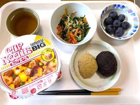 給食にカップ麺⁉と思われるかもしれないですが、好きな利用者さんも多いので、年に1度のお楽しみとして提供しています(^^)