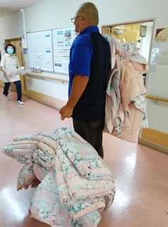 利用者さん、今日から新しいお布団で寝ていただけます。