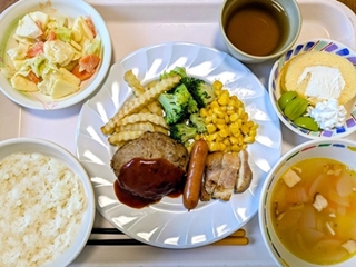 敬老のお祝い会が行われ、今年65歳を迎えるIさんをみんなでお祝いしました(^^) 寮長からのお祝いの言葉の後、自治会長のSさんからプレゼントが手渡されました。 昼食は、いつもより少し豪華なお祝い膳です。 ・栗ご飯 ・天ぷら盛り合わせ ・寿卵焼き ・炊き合わせ ・和風コールスロー ・すまし汁 ・ミニパフェ 主役のIさんがパフェが好きということで、デザートはミニパフェを作りました。 いつContinue reading