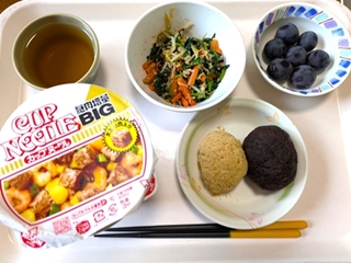 今日は彼岸法要が行われました。 昼食には毎年恒例となっている、手作りおはぎを提供しました。 美味しいつぶあんも、調理員さんの手作りです(^^) ・卵とじそば ・ほうれん草の胡麻和え ・おはぎ2種 ・みかん 利用者さんの高齢化もあり、安全に食べていただくために今年はもち米を混ぜずにごはんで作りました。 刻み食の利用者さんも、ごはんでできているのでおはぎをくずして食べていただくことができました。(写真Continue reading